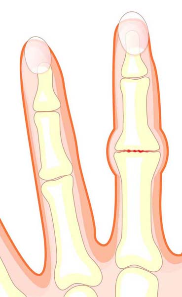 ブシャール結節は、手指の第二関節(PIP関節)の軟骨がすり減って痛む疾患です。
